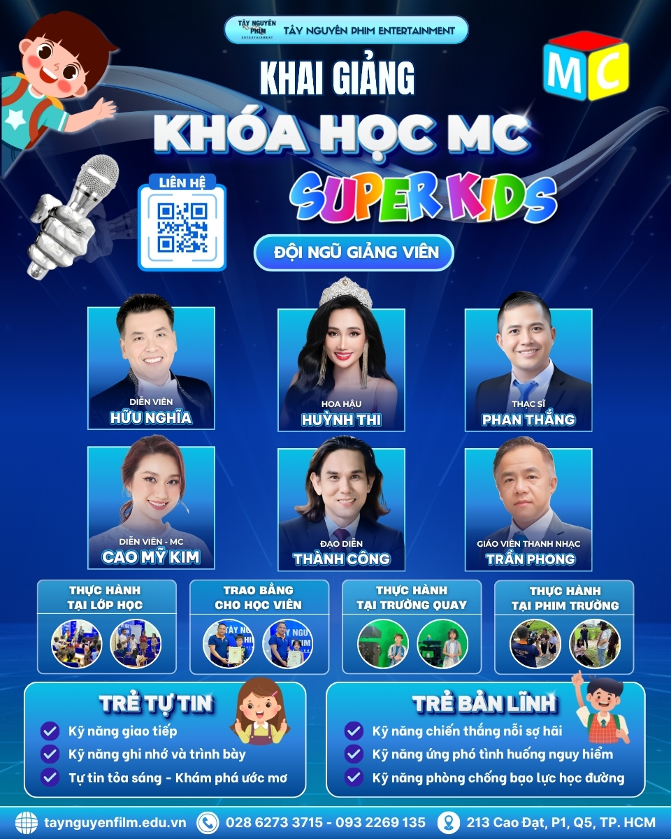 Khóa đào tạo MC nhí tại Tây Nguyên Phim chính là bệ phóng hoàn hảo, giúp các bé khai phá khả năng ngôn ngữ, rèn luyện bản lĩnh và trở nên hoạt bát, lanh lợi hơn trong cuộc sống.
