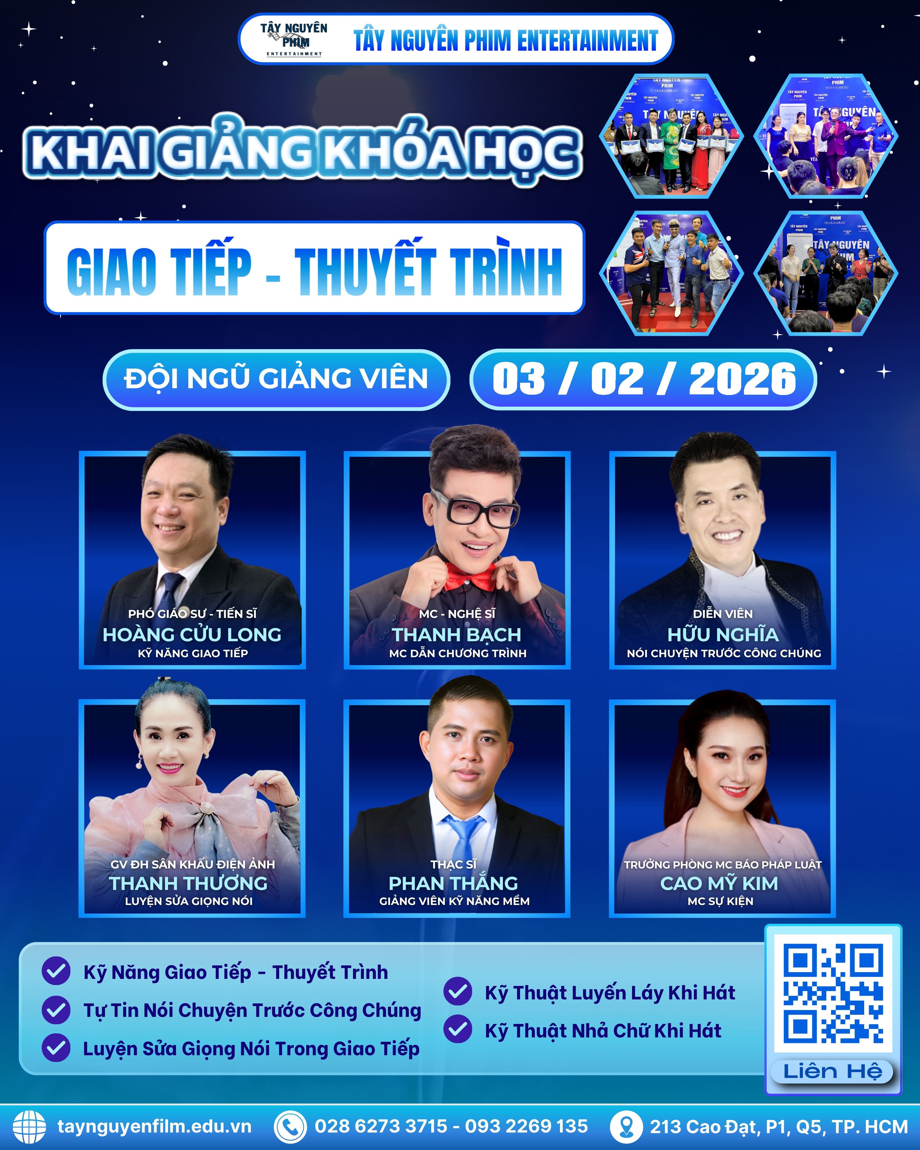 Không chỉ giúp con đường trở thành MC của bạn dễ dàng hơn mà còn nâng cao hiệu quả trong công việc, đem đến cho bạn những kết quả hài lòng nhất. Còn chần chờ gì mà không đến ngay với Khóa Đào Tạo MC của Tây Nguyên Phim. Chúng tôi sẽ cùng bạn nổ lực thay đổi và hoàn thiện bản thân mình.
