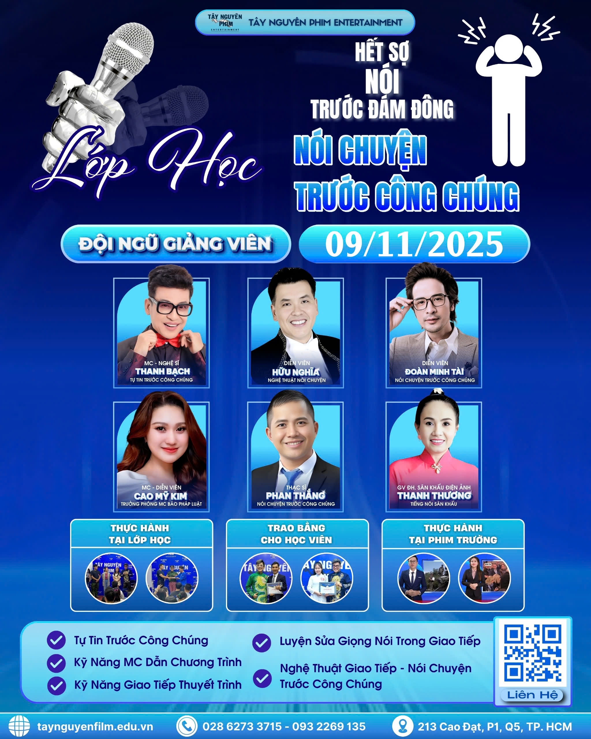 Hiểu được tâm lí và nhu cầu của mọi người, Tây Nguyên Phim khai giảng khoá học Kỹ Năng Nói Trước Công Chúng. Khoá học này chứa đựng nhiều bí quyết, phương pháp, và lời khuyên giúp bạn có thể tự tin nói chuyện trước công chúng. Mời các bạn cùng tham khảo nhé!!!